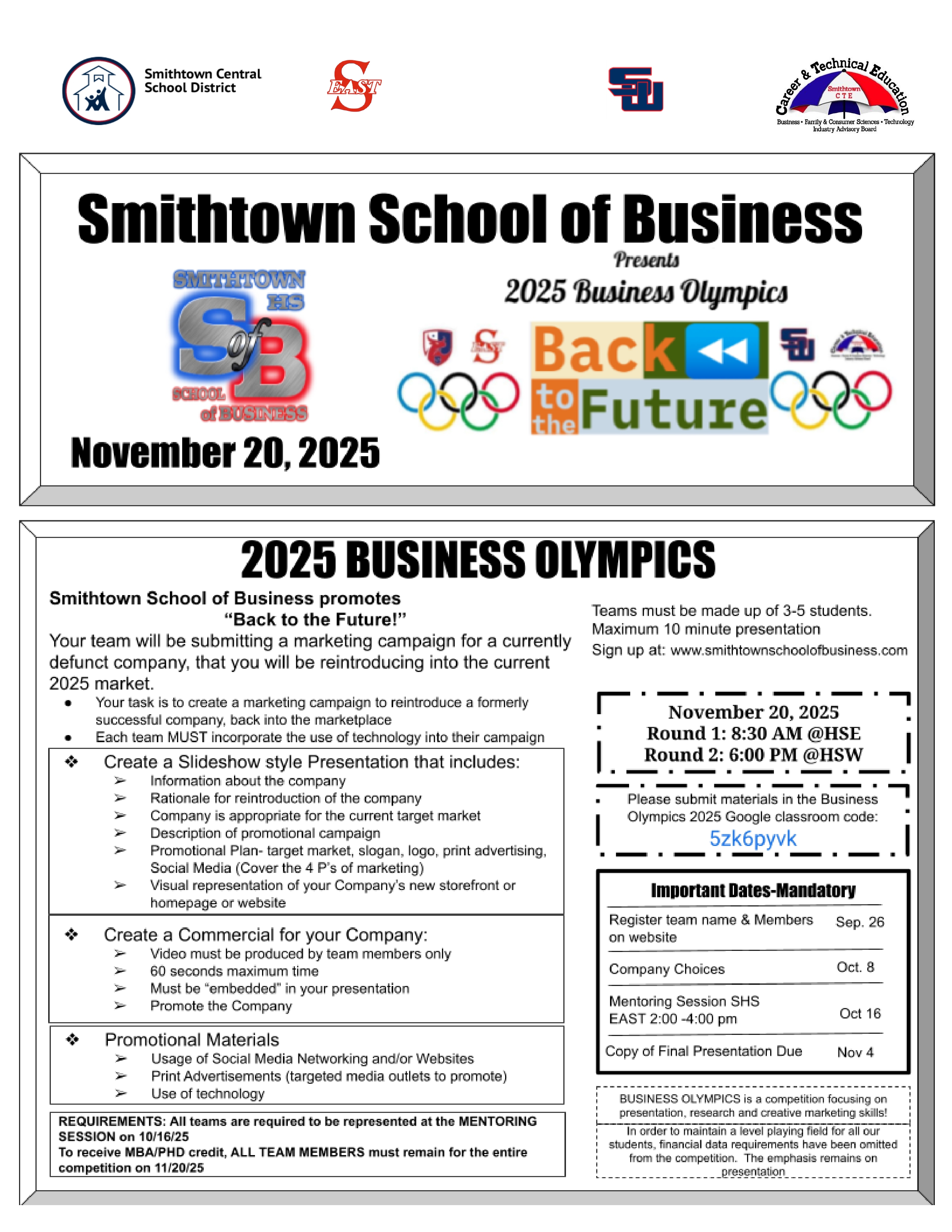 Join the Business Olympics Google Classroom: 5zk6pyvk
